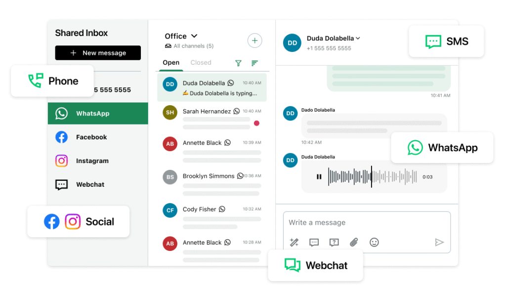 Com o GoTo Contact Center, o cliente é atendido no canal que preferir (voz, WhatsApp, redes sociais, webchat), com histórico centralizado e sem precisar repetir informações.